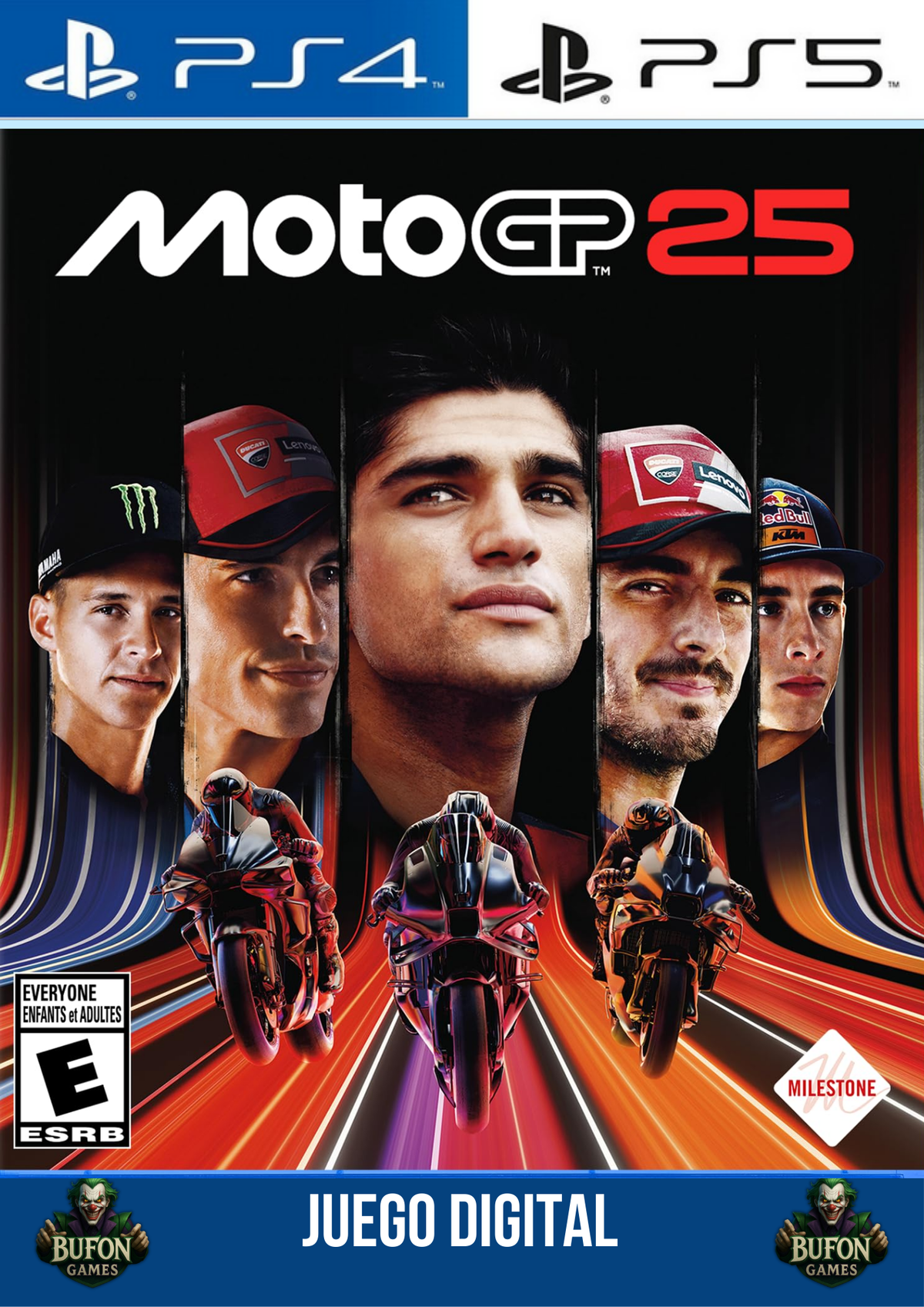 🎁 Incluye: Temporada oficial MotoGP 2025, pilotos y circuitos reales, modos carrera, arcade y simulación, disciplinas adicionales y opciones de personalización