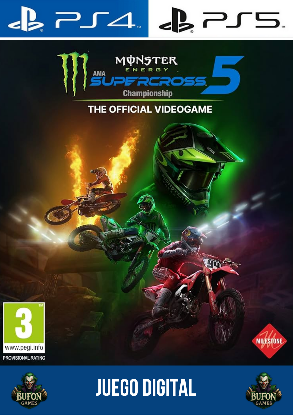 ¡Encendé motores y sentí la furia del barro bajo tus ruedas! En Monster Energy Supercross - The Official Videogame 5 vivirás la experiencia definitiva del motocross, con todos los pilotos oficiales, motos y circuitos de la temporada. 🌪️