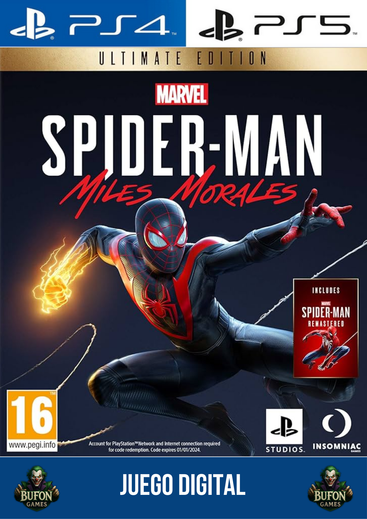 Sumergite en una experiencia electrizante con Miles Morales, el nuevo héroe que debe cargar con el legado de Spider-Man y forjar su propio camino. Esta edición premium te da acceso a la historia completa de Miles, junto con Marvel’s Spider-Man Remastered, el título que revolucionó los juegos de superhéroes. 🎮🔥