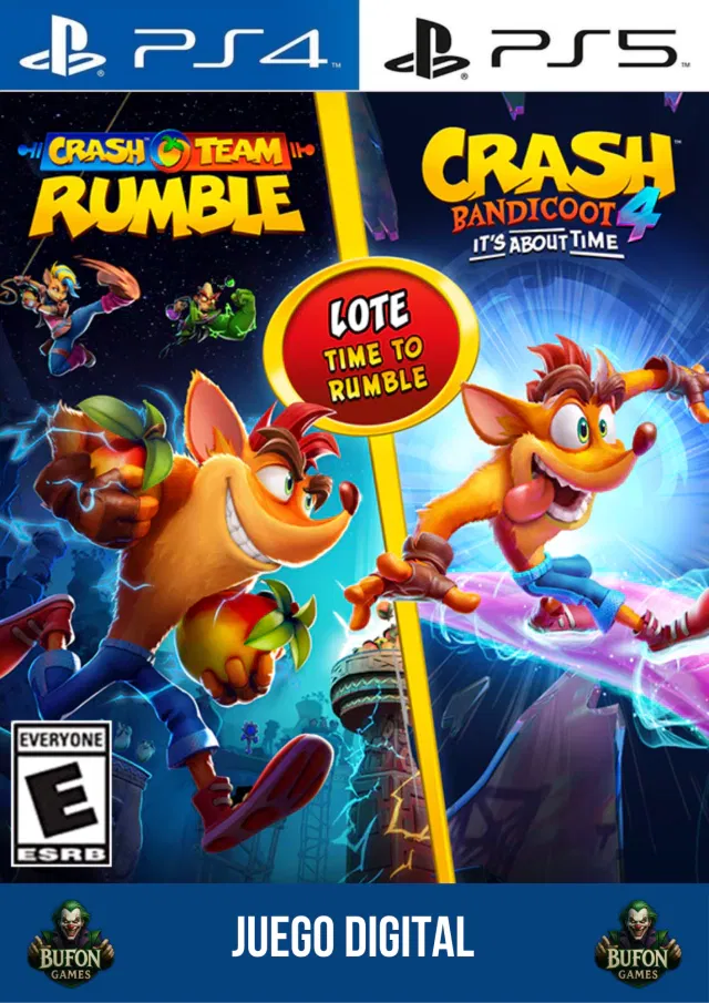 Viví la acción explosiva y la aventura más frenética con este combo imperdible. Por un lado, Crash Team Rumble te invita a sumergirte en batallas 4v4 llenas de estrategia, poderes y mucho caos junto a tus personajes favoritos de Crash 🥊⚡. Por el otro, Crash Bandicoot 4: It's About Time te desafía con plataformas llenas de desafíos, mundos vibrantes y el poder de las Máscaras Cuánticas para romper el tiempo y salvar el multiverso ⏳🚀.