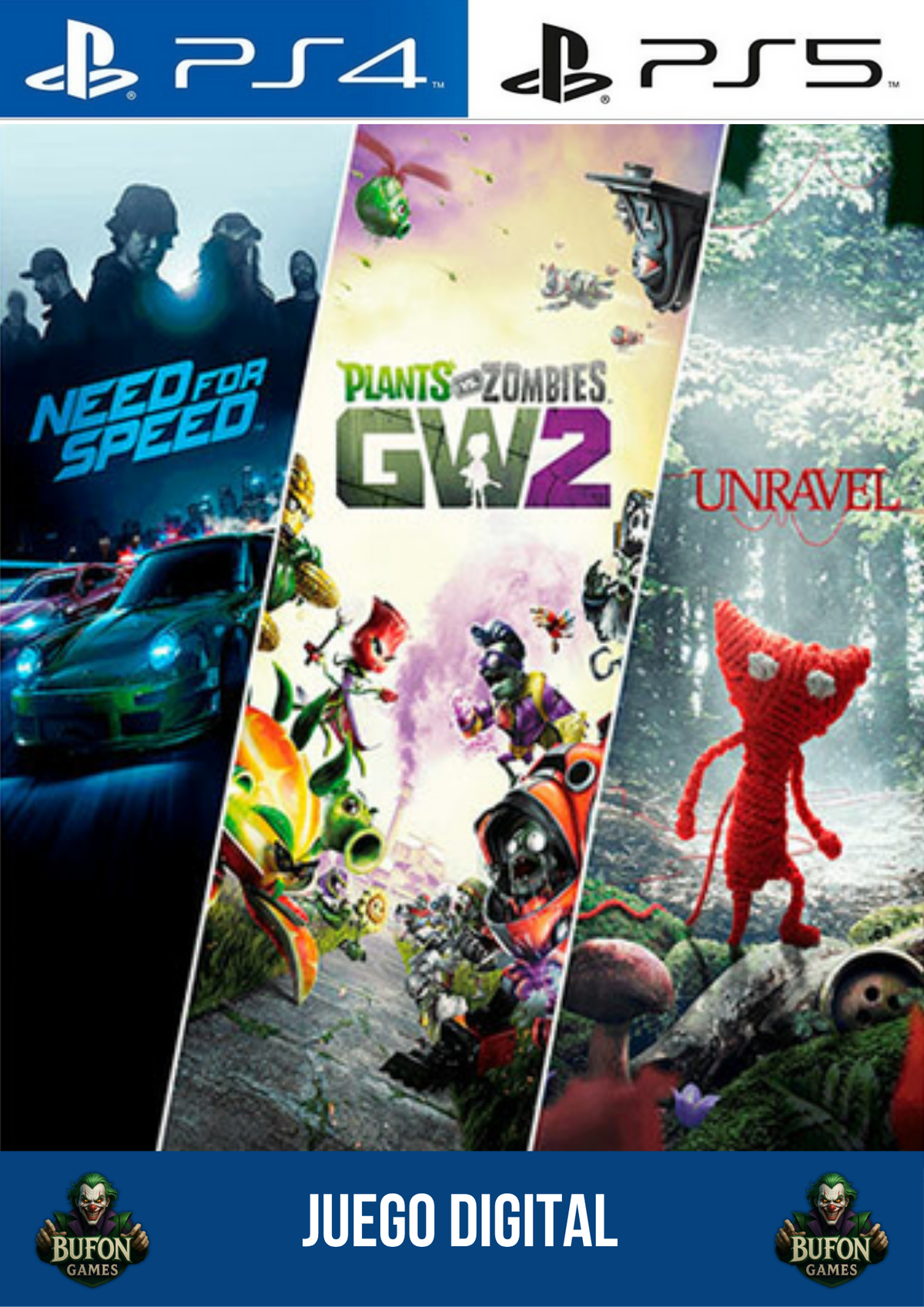 Un pack ideal para jugar en familia, con títulos variados que van desde la aventura emotiva hasta carreras veloces y acción divertida. Tres mundos distintos, un solo bundle: cada miembro encontrará algo para disfrutar. 🚗🌻🧶