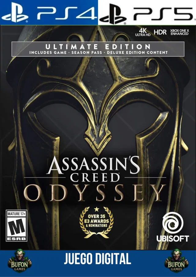 ⚔️🏛️ Assassin's Creed Odyssey Ultimate Edition te sumerge en la majestuosa Grecia antigua, donde la mitología y la historia se entrelazan en una aventura épica y apasionante. Convertite en un guerrero legendario y forjá tu propio destino mientras explorás un vasto mundo abierto lleno de batallas colosales, decisiones que cambian el rumbo y secretos por descubrir 🏺🌊.