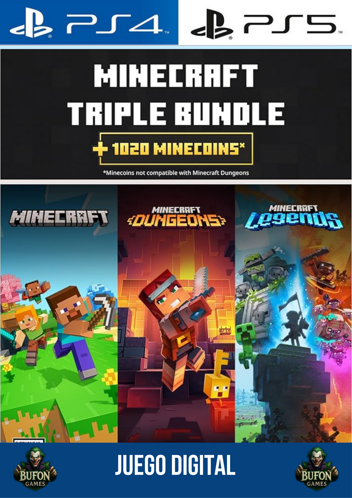 ✨ Un paquete completo con tres experiencias distintas dentro del universo Minecraft, ideal para fans que quieren variedad de juego en un solo bundle.